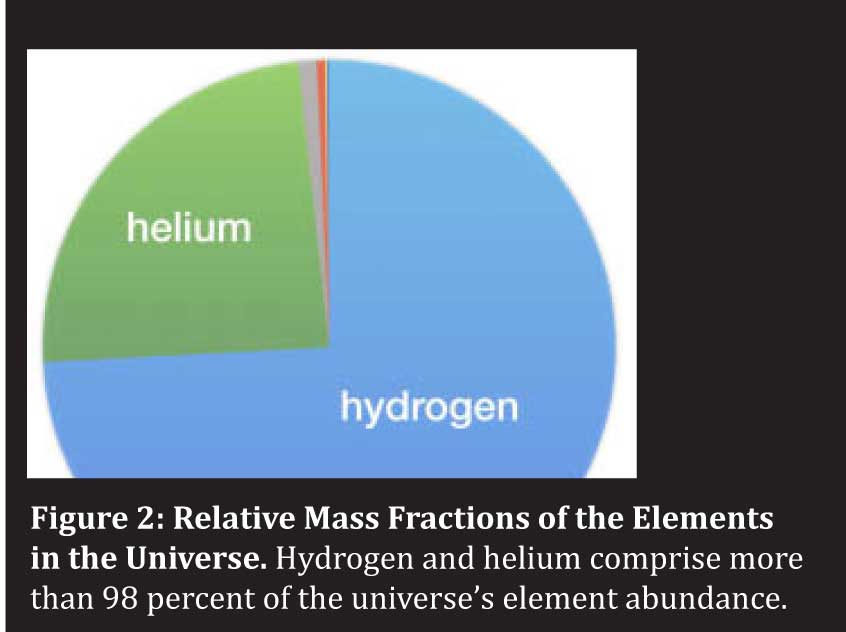 After hydrogen and helium, oxygen is the third most abundant element in the universe (see Figure 2).3 Oxygen atoms have eight electrons, compared to two for helium and one for hydrogen. It takes a lot more heat to strip away all the electrons of an oxygen atom than of a helium or hydrogen atom. Ostriker and Cen calculated that the heat of intergalactic gas would be able to strip away five, six, or seven of oxygen's electrons, but not all eight. The remaining electrons would allow for an absorption spectrum measurement sufficient to determine the mass of the previously unmeasurable intergalactic gas.